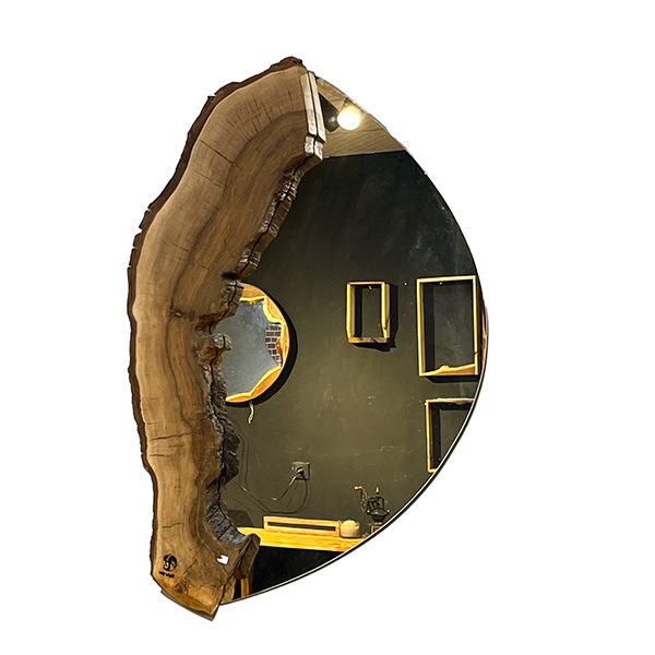- چوب گردوی طبیعی و خاص: قاب آینه از چوب گردو ساخته شده است که به خاطر بافت خاص و رنگ گرم، جذابیتی منحصربهفرد ایجاد میکند.