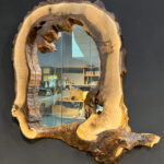 آینه روستیک چوب گردو با طراحی دفرمه – هنر طبیعت در خانه شما