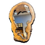 آینه روستیک چوب گردو با طراحی دفرمه – هنر طبیعت در خانه شما